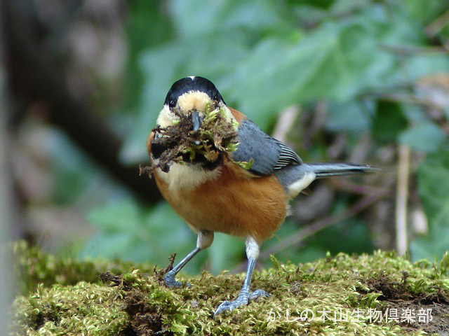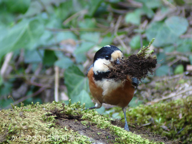 巣の土台となる苔を盛んに運んでいます。