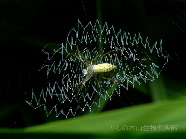 ジグザグの太い糸は隠れ帯と言われて、クモの本体がどこだかわからないようにしています。