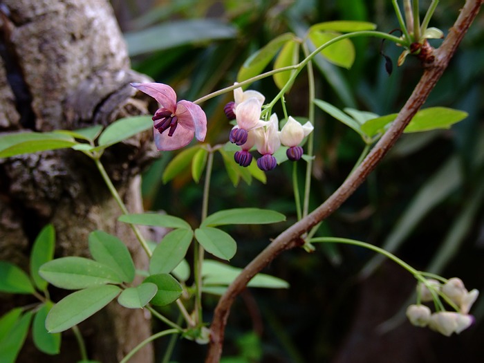 大きな一輪が雌花、小さく固まって咲いているのが雄花です。