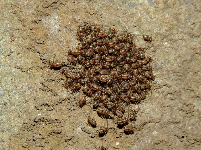 チャタテムシの仲間の幼虫の塊。