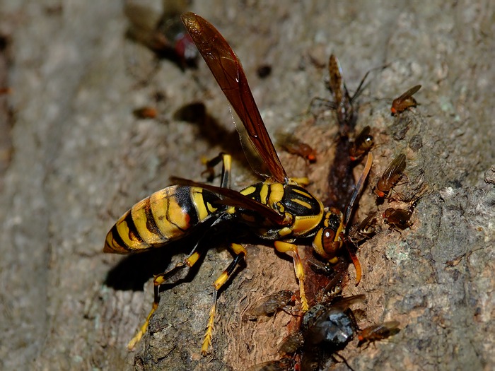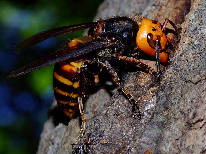 オオスズメバチはバリバリ木を削り穴を広げます。