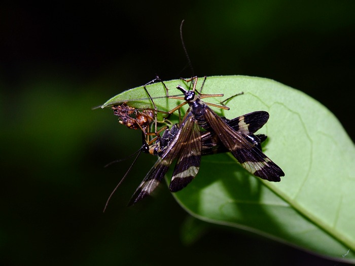 シリアゲムシは雄が獲物の虫を捕り、雌に献上します。