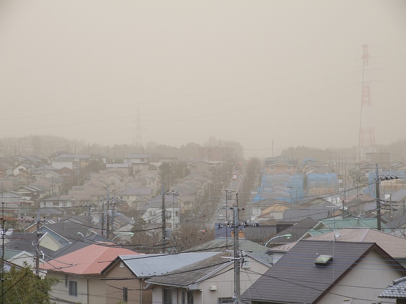 黄砂かと思ったのですがそうではなく、強風で田畑の土などが竜巻のように舞い上げられ都市部まで来る現象だそうです。
