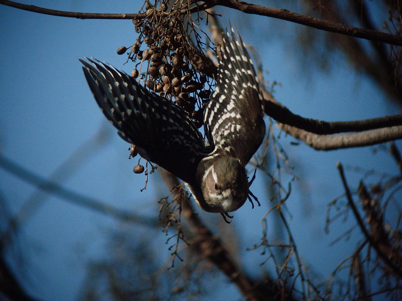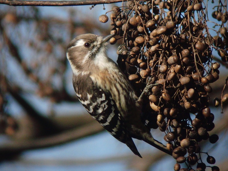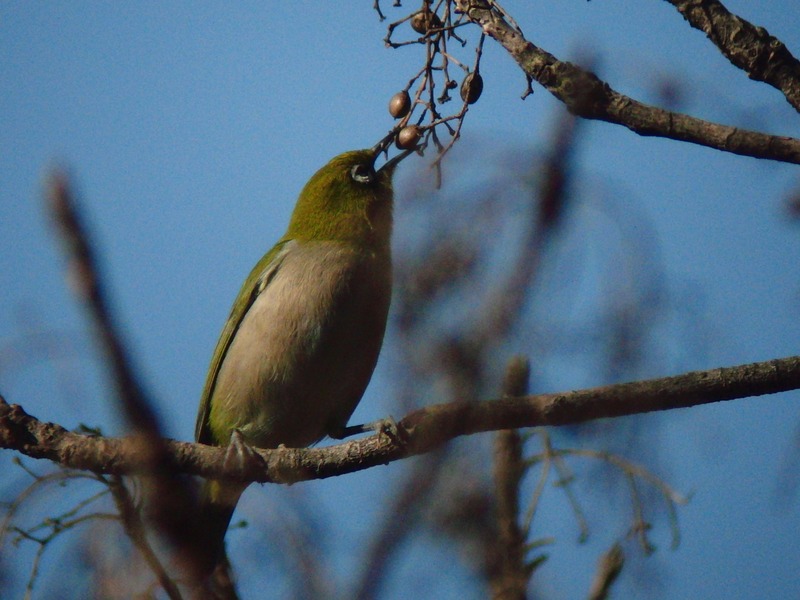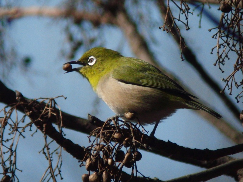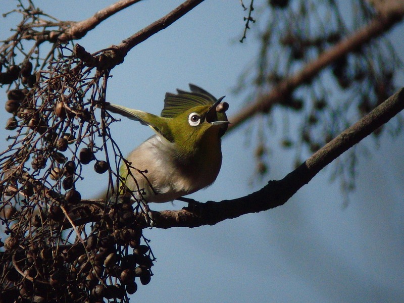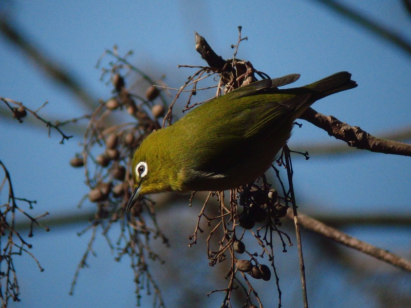 |   | メジロ  ハゼノキの実もだいぶ減って来ました。  あと一週間はもたないのではないでしょうか。  今日は、今季最後のハゼノキでの鳥見です。                  |