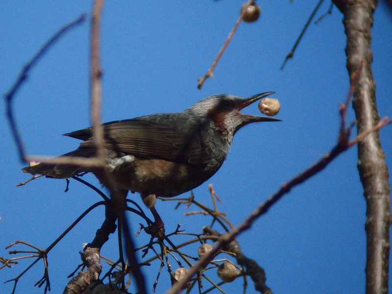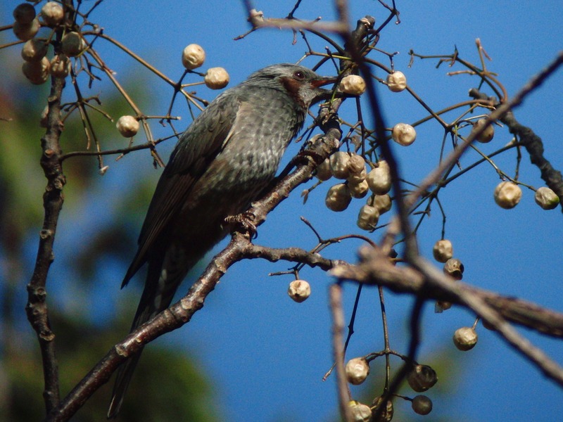 |   | ヒヨドリ  ヒヨドリがセンダンの実を食べるのは  これからが本番のようです。                   |