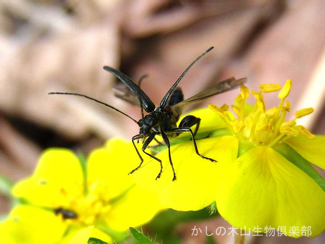 キジムシロにモモブトカミキリモドキが来ています。