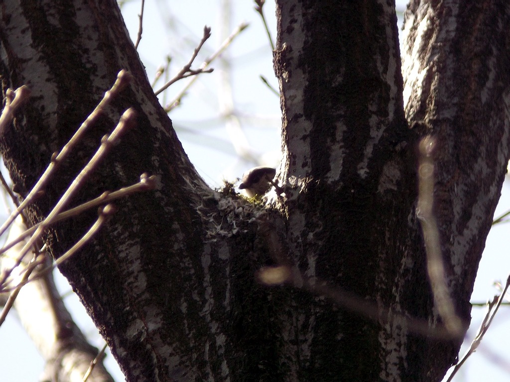 エナガの巣作り。