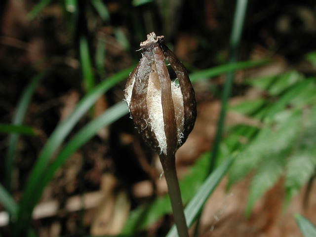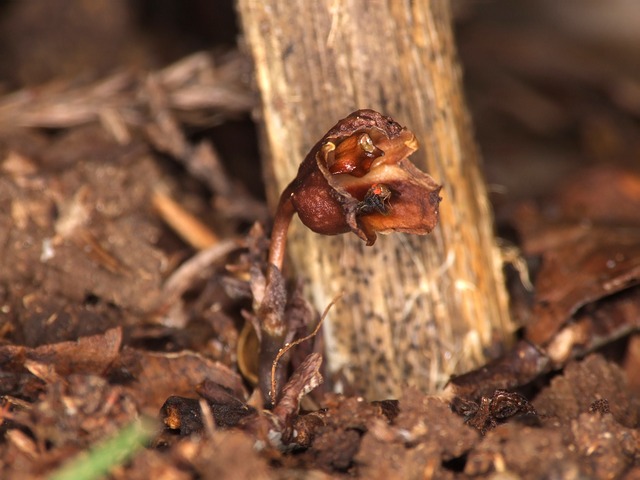 腐生植物と呼ばれるなかまで自身では光合成などを行なわず、腐った落ち葉などを栄養源として育ちます。